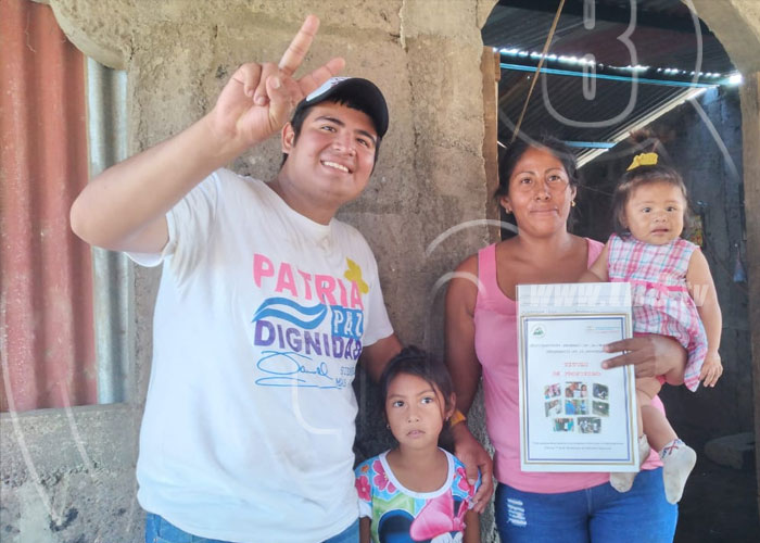 Al igual que esta mujer, más de cien familias del Anexo Camilo Ortega, que se ubica en el municipio de Tisma, en Masaya, recibieron sus títulos de propiedad y solvencias de manos de jóvenes de la promotoría solidaria y la Procuraduría de la República.