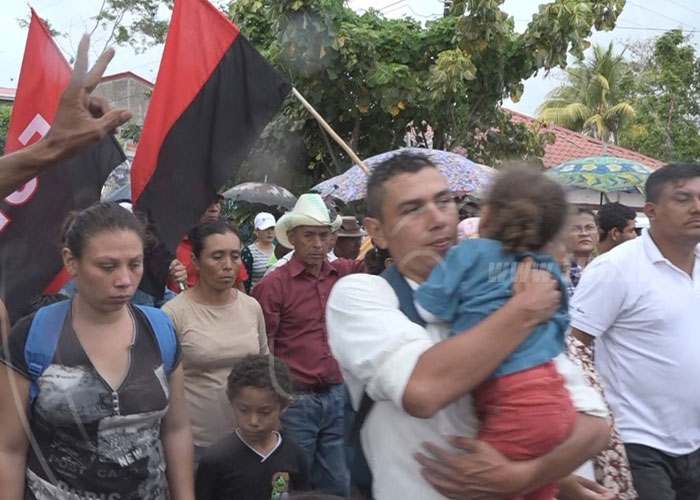 Con bandera Roja y Negra en mano, carrozas alusivas a la paz, música de banda filarmónica, con cientos de militantes sandinistas se concentraron en el barrio Rufino López, rumbo hacia la cancha municipal.