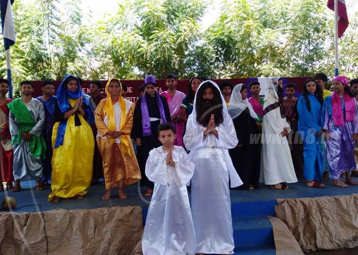 La judea estudiantil del colegio público Reino de España ubicado en Tipitapa, la mañana de este miércoles 1 de abril realizaron una presentación de la escena número siete, "La bien aventuranza" donde los actores principales son Jesús y María madre de Jesús. Está actividad forma parte del arte, cultura y tradición religiosa que se promueven en los diferentes colegios públicos del país.