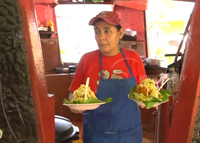 “Tenemos el vigorón y lo tenemos barato, así sea de carne o sólo cáscara, ese lo tenemos a 80 córdobas, el mixto que lo tenemos a C$100, y el cerdo adobado con yuca a 100 córdobas y el bajo de refresco natural a C$20”, dijo Angélica Talavera, propietaria del local.
