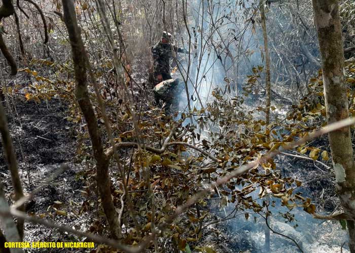El Ejército de Nicaragua informa al pueblo nicaragüense sobre sofocación de incendio forestal en la comarca Hato Grande, en Juigalpa, departamento de Chontales.