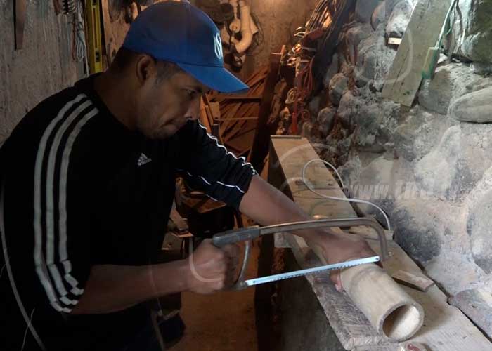 Con el deseo de iniciar su propio negocio para mejorar sus condiciones de vida, el joven Néstor Molina, habitante del barrio San Miguel en la ciudad de Boaco, trabaja por cuenta propia en su emprendimiento, en la fabricación de artículos artesanales a base de bambú y madera.