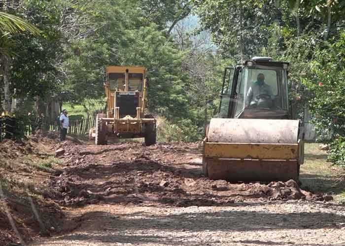 El alcalde de Matiguás, Marlon Scarlet, acompañado de autoridades municipales y familias de la zona de la comunidad de La Patriota está rehabilitando el proyecto de mantenimiento y reparación de caminos rurales.