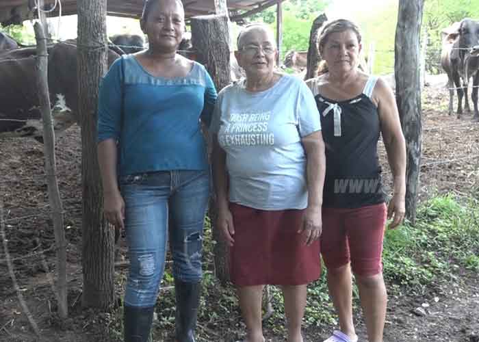Fátima Oporta, Maritza González y Ángela Oporta trabajan juntas para asegurar la sostenibilidad de sus hogares con productos como la leche y cuajadas que se elaboran de los ordeños de las vacas.