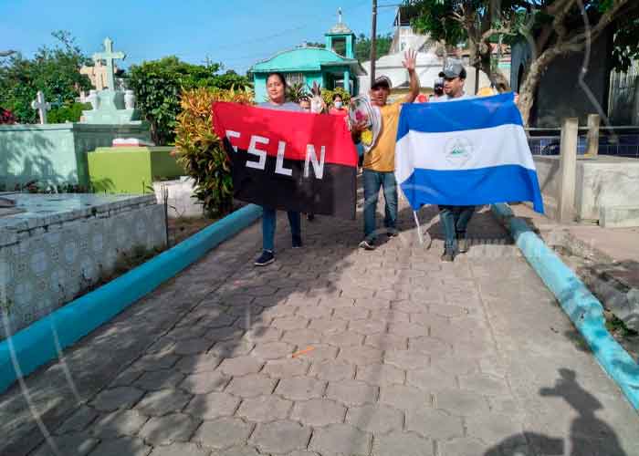 Miembros de Juventud Sandinista 19 de Julio y autoridades municipales, depositaron ofrendas florales en las tumbas y el monumento dedicado a los héroes y mártires del municipio Boaco.