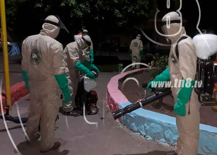 Con el objetivo de prevenir que la pandemia siga afectando a las familias nicaragüenses, el Gobierno del presidente Daniel Ortega y la compañera Rosario Murillo a través del Ejército de Nicaragua en conjunto con el Ministerio de Salud y las alcaldías, está realizando la desinfección de las calles y espacios públicos, eso fue lo que se llevó acabo esta noche en el municipio Sébaco del departamento de Matagalpa.