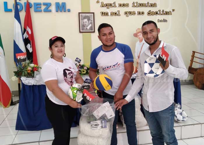 Víctor Briones, coordinador departamental del Movimiento Deportivo Alexis Argüello, expresó: "Estamos haciendo entrega de material deportivo que consta de balones de fútbol campo, balones de fútbol sala, de baloncesto, voleibol, pitos, cronómetros, tarjetas arbitrales, red de voleibol, de fútbol sala y campo".