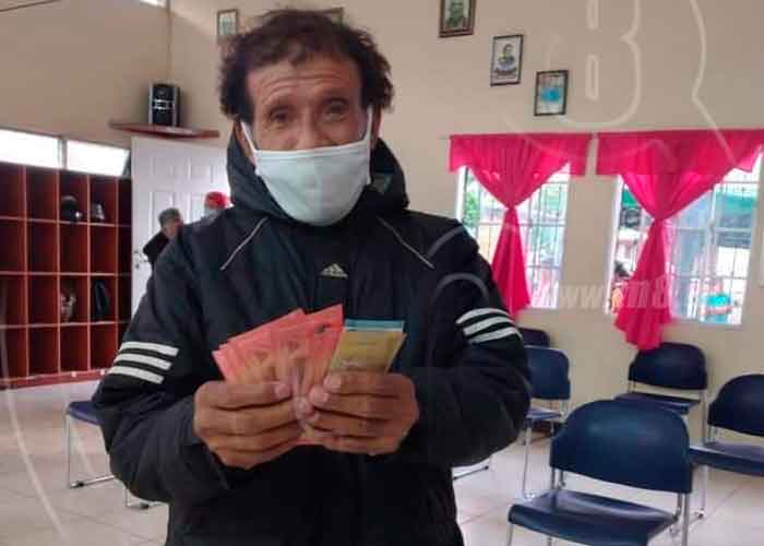 Antonio García, adulto mayor, manifestó: "Me siento muy contento por recibir en esta mañana mi pago de pensión reducida porque en estos tiempos de crisis viene siendo una bendición para todos nosotros que necesitamos de un dinerito para ayudarnos, y nuestro Gobierno Sandinista siempre nos garantiza este derecho que antes en otros años nos era robado".