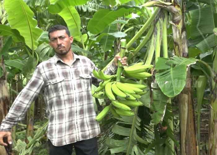 Don Róger Angulo a través de su producción está asegurando el abastecimiento de plátano, además de otras frutas y tubérculos, pues ha diversificado su parcela con otros cultivos. Muy contento dio gracias al Gobierno central por impulsar y asistir técnicamente su producción.