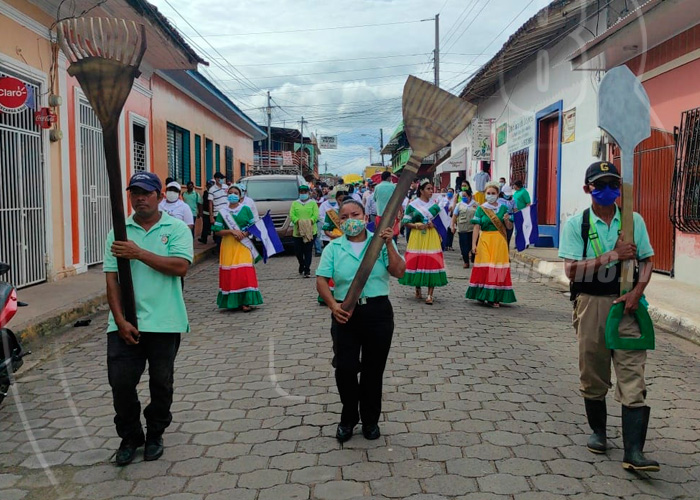 El recorrido inició de la Gasolinera Uno Asunción al Parque central de Juigalpa al ritmo de chicheros, grupos de bailes, los símbolos de la limpieza, carrozas adornadas con lo más representativo del municipio; como fue María y Lencho, dos personajes que representaban la alcaldía de Juigalpa, en compañía de una niña y un niño del CDI Tía Irma que ilustraban una vivienda limpia, aseada y arborizada.