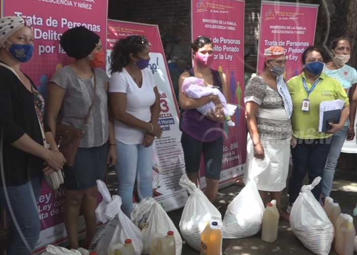 Jóvenes madres con partos múltiples del departamento de Rivas, recibieron la tercera entrega de paquetes alimenticios del año 2020 que el Gobierno otorga a través del Ministerio de la Familia.