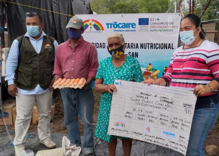 Es así que las familias numerosas de más de cinco personas reciben los paquetes que contienen un quintal de frijoles, un quintal de maíz, 25 libras de arroz, 12 libras de azúcar, dos litros de aceite, huevos y un kit higiénico, con la ejecución financiera de la agencia católica de Irlanda, Trocaire.