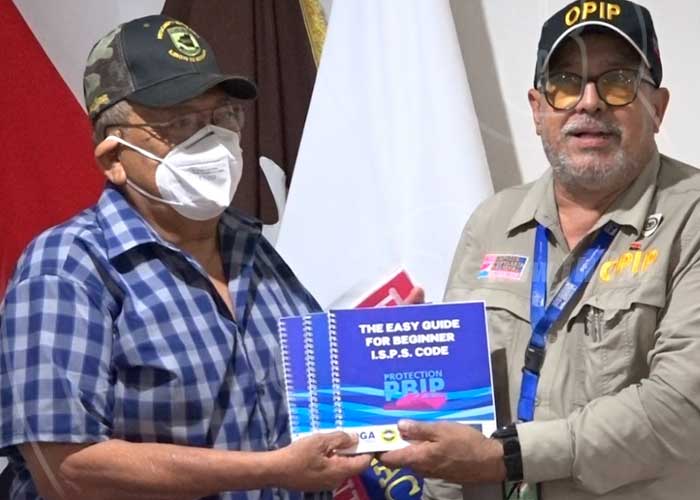 Nerry Sánchez, director nacional de seguridad portuaria, detalló que “hicimos entrega de nuestra guía fácil que es única en el mundo para interpretar el código PBIP y lo tenemos en miskito, inglés y español”.