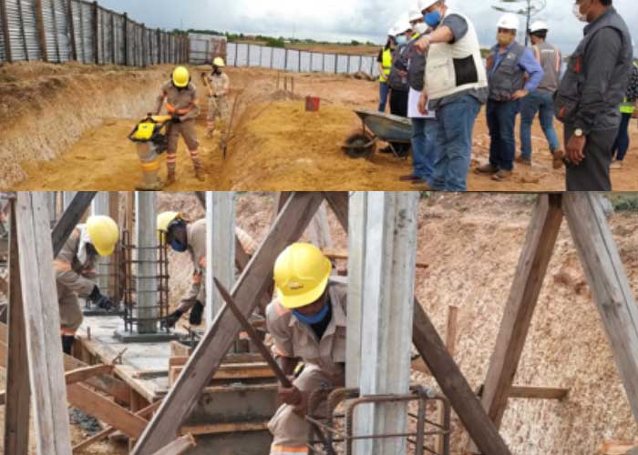 Durante el recorrido se observó el nivel de avances que se tiene en el cerco perimetral, en el acopio del material selecto traído desde la capital y en la excavación para las dos cisternas de almacenamiento de agua que tendrá este moderno hospital.