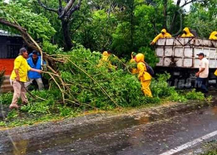 En horas de la mañana debido a las fuertes ráfagas de viento, unas ramas de unos árboles colapsaron sobre la vía, impidiendo el tráfico vehicular de la carretera San Marcos-Masatepe.