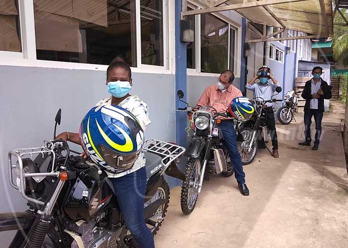 La entrega la realizó el Dr. Abraham Mayorga, responsable del área de epidemiología del SILAIS en el Caribe Sur, quien manifestó que dos de las cinco motocicletas ya se encuentran en los municipios de Kukra Hill y Laguna de Perlas, y que hoy se hizo entrega a los municipios de Corn Island, Tortuguero y La Cruz de Río Grande.