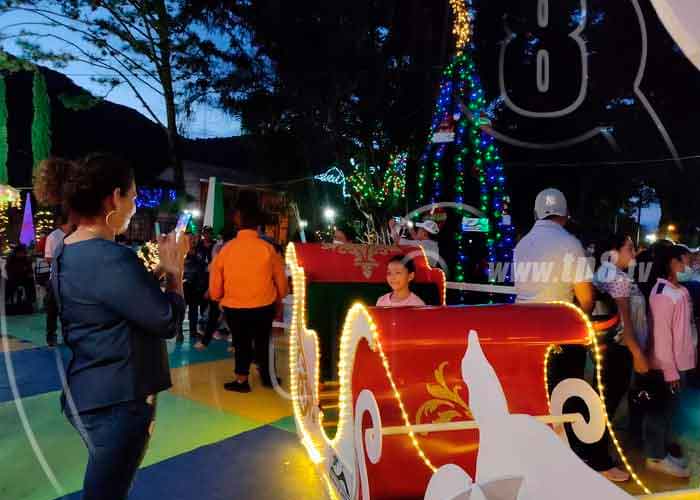 Luces multicolor, mallas led, arbolitos, bicicletas luminosa y otros adornos, el pesebre y muchos adornos más dan una vistosidad diferentes a este parque central Carlos Fonseca Amador de Jinotega. Los adornos, el Santa Claus y el Trineo para que los niños y adultos se tomen la foto del recuerdo.