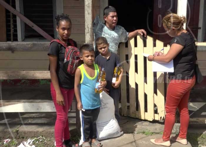 415 familias en emergencia social de 10 barrios del casco urbano de Bilwi, recibieron paquetes alimenticios.