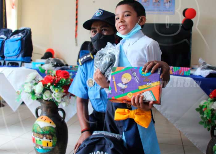 "Los paquetes traen la mochila, cuadernos, lápices, lapiceros, estuches geométricos, zapatos, uniformes completos, una tarjeta con 2 mil córdobas canjeables en el comisariato y una tablet. Es para nosotros una satisfacción estar siempre al lado de la niñez que son el futuro del país, y sabemos que los padres policías dan todo no solo por sus hijos, también dan el tiempo necesario para cuidar de los hijos de cada ciudadano", acotó Valle.