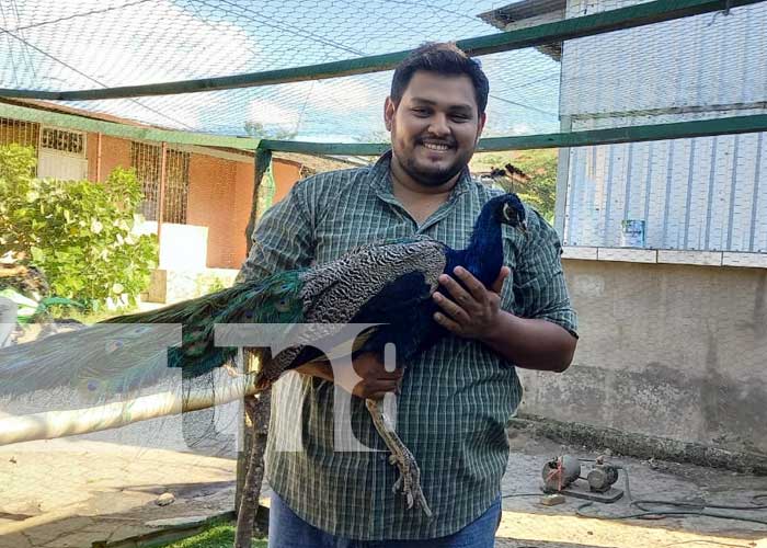 Darwin vive en Masatepe y ahora en su hogar alberga y cria aves exóticas como el pavo real, periquillos, gallinas de raza, codorniz, gansos entre otros.