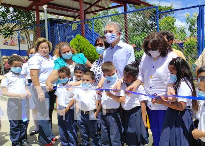 Autoridades departamentales, municipales, la Ministra de Educación, el embajador de China Taiwán, estudiantes, padres de familia y docentes con mucha emoción y alegría inauguraron este martes las nuevas aulas del preescolar de la escuela Enrique Tierno Galván, en Juigalpa, lo que brindará mejores condiciones educativas a niños y niñas.