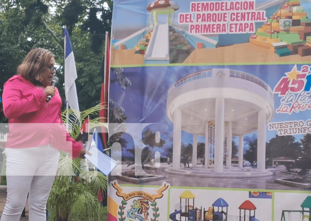 Autoridades del municipio de San Marcos, Carazo, en saludo al 45 aniversario del triunfo de la Revolución Popular Sandinista; han anunciado el inicio de la remodelación del parque central en su primera etapa.