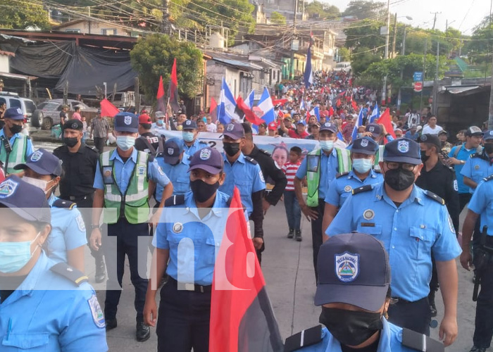 Esta grandiosa caminata dio inicio en el Parque de los héroes y mártires donde toda la militancia sandinista junto a las autoridades y la Policía Nacional caminaron por la venida central de esta localidad dirigiéndose por algunos barrios gritando consignas revolucionarias.