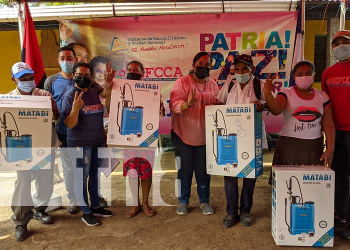 El Ministerio de Economía Familiar, Comunitaria, Cooperativa y Asociativa (MEFCCA), miembro del Gabinete de la Producción, realizó la entrega de equipos de bombas de mochila a protagonistas del bono tecnológico agrícola en el municipio Somoto.