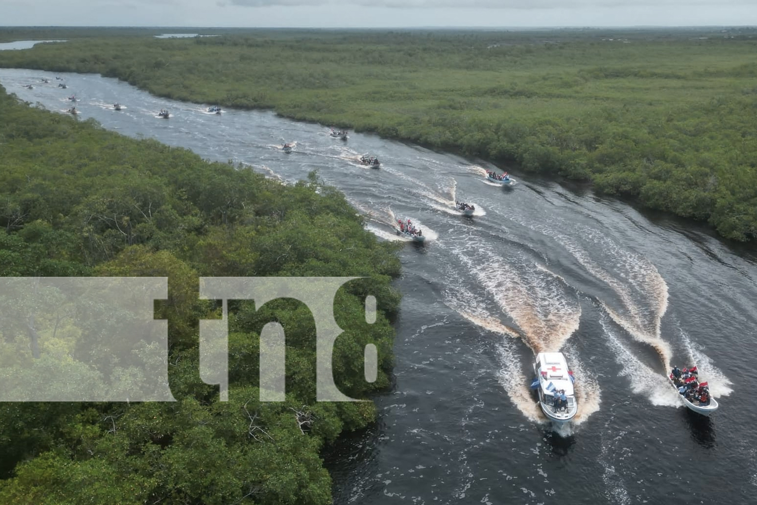 Este viernes, la militancia sandinista del municipio de Puerto Cabezas protagonizó una emotiva caravana acuática, como antesala al 46 aniversario del Triunfo de la Revolución Popular Sandinista; reafirmando el compromiso con los ideales de justicia y soberanía que dieron origen a este proceso histórico.
