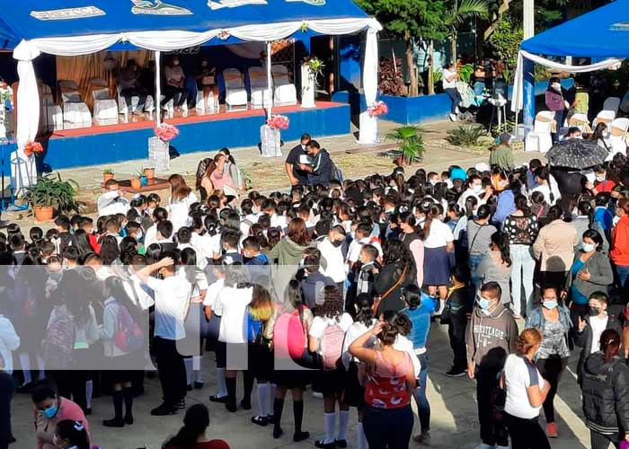La comunidad educativa del Colegio Público Augusto C. Sandino, en conjunto con las autoridades municipales y del Ministerio de Educación, MINED, participaron en la inauguración del año escolar 2022 para Jinotega.