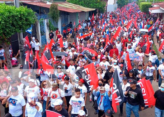 El bulevar nuestra Señora Santa Ana en Chinandega fue el punto de partida de la mega caminata «43/19 Fuerza de Victoria», misma en la que participaron ciudadanos que celebran con alegría y júbilo un aniversario más del triunfo de la Revolución Popular Sandinista y la continuidad de los programas de Gobierno que ejecuta el FSLN.