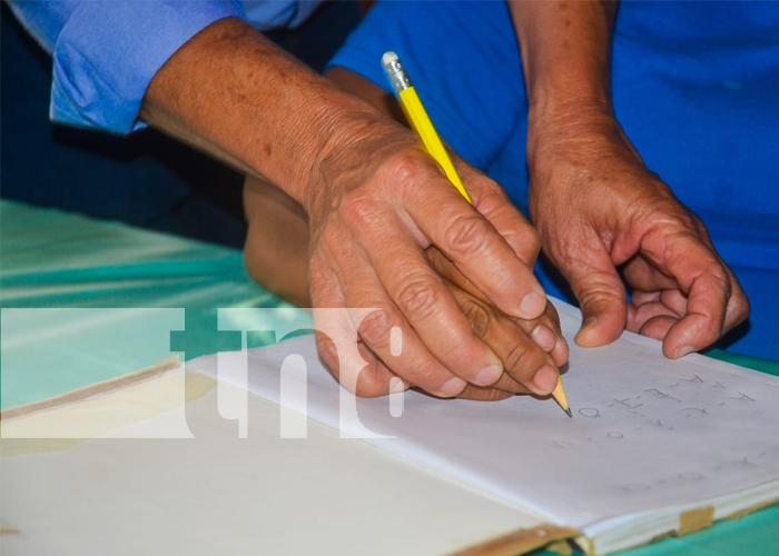 «Yo comencé en la Asociación de Educación Popular Carlos Fonseca, pero antes de eso, en 2005, las alcaldías eran neoliberales. Aquí, por ejemplo, en este municipio eran liberales, pero me delegaron la tarea; y un señor de apellido Delgado me prestó una casita, un cuartito, y me dijo: ‘Aquí puedes hacer tu oficina de alfabetización’. Me prestó una mesa y dos banquitos, y comencé con las uñas, respirando material, con hojas en blanco. Fui a hacer un censo y me fui a un barrio que se llama Los Mercados; pero cuál fue la sorpresa que todas las casitas eran bandera roja. Un muchacho me dijo que si era sandinista, allí no me iban a recibir, pero le dije yo, «vamos a ver». En algunas nos recibían y otras no. Censé en esa comunidad de 900 ciudadanos, 600 no sabían leer y escribir», enfatizó Ampie.