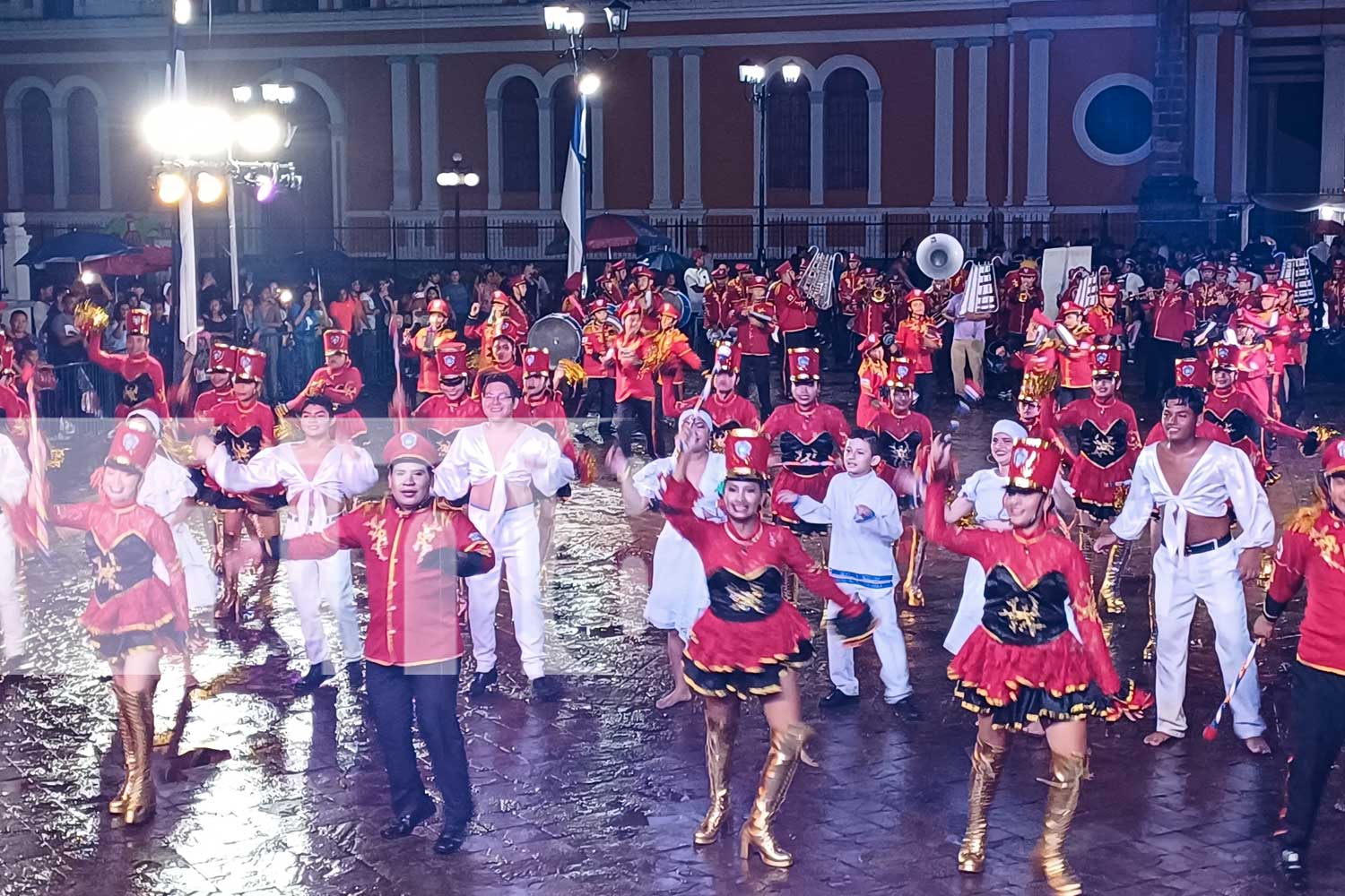 En total, fueron 10 bandas rítmicas, procedentes de diferentes puntos del país, las que, con su alegría, arreglos musicales y coreografías; rindieron homenaje a la bella ciudad colonial.