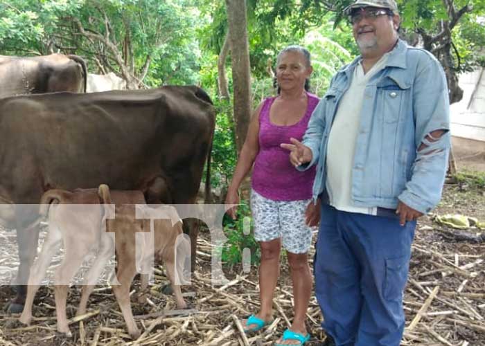 Tatiana Pérez de la comunidad El Contadero, dueña de la vaca que parió dos crías; dijo sentirse muy bendecida por Dios. Ellos solo tienen la vaquita y no tenían semental para cubrirla y este programa del INTA llegó a ellos en el momento adecuado.