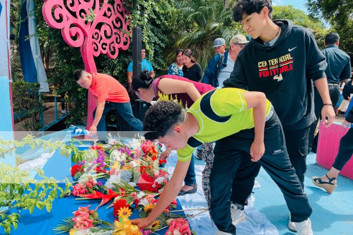 Estudiantes de distintas carreras técnicas, del turno sabatino, del Centro Tecnológico Ernest Thalman, en Jinotepe, realizaron un acto en saludo al 129 natalicio del General Augusto Nicolás Calderón Sandino, a quien ante su monumento colocaron también ofrendas florales.