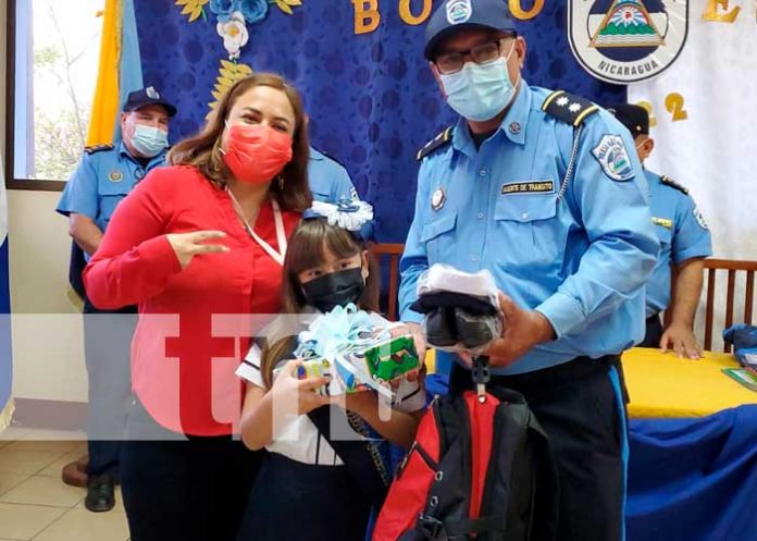 La Jefatura policial de Nueva Segovia, hizo entrega este jueves 20 de enero, de las mochilas escolares a 120 niños, niñas y jóvenes, hijos de policías caídos en cumplimiento del deber; oficiales activos y personal administrativo de la institución en este departamento.