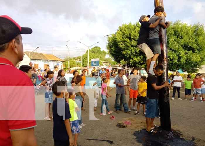 Esta tarde las familias del municipio de Moyogalpa, en la Isla de Ometepe, disfrutaron del popular “palo lucio “esto en vísperas del 44 aniversario de la Revolución Popular Sandinista; grandes y chicos se dieron cita en las inmediaciones de la cancha deportiva de la localidad.