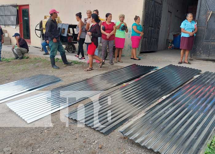 Posterior a la visita realizada por el alcalde días anteriores, este miércoles las familias que habían quedado sin un techo digno tras el paso de la tormenta, fueron beneficiadas con la entrega de planes techos; los cuales fueron enviados por el Gobierno del presidente Daniel Ortega, esto como un apoyo solidario.