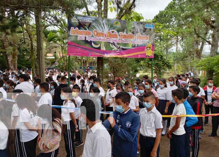 El compañero Álvaro Méndez, delegado departamental del INAFOR en Jinotega, manifestó: «En este árbol tenemos más de 30 especies forestales presentes; entre ellas, sacuanjoche, roble, madroño, mango, naranjagria, pino, jiñocuao, cedro real, llamarada del bosque, entre muchas otras. Esto es con el objetivo de fortalecer los conocimientos de cada uno de los jóvenes estudiantes de este instituto. Así mismo para promover el cuido de la naturaleza y nuestra madre tierra».