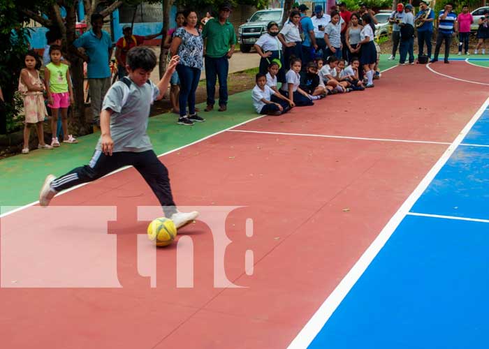«Haciendo la inauguración oficial de lo que es la Cancha La Abejita. Esta cancha estaba en pésimas condiciones y pues prácticamente se hizo una remoción completa de todo lo que es el piso, se cambió a concreto; colorido, para que la población de este sector y todo el distrito pueda desarrollar sanamente las diferentes disciplinas«; mencionó Janina Noguera, alcaldesa de Masaya.