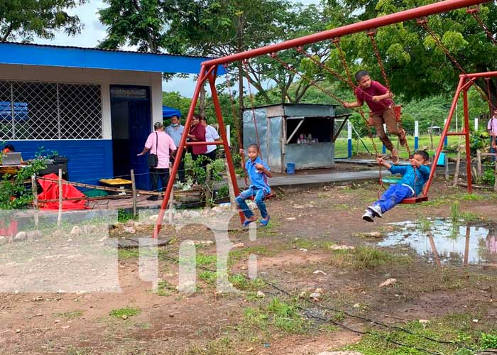 Niños y docentes de la Escuela en la comunidad de Hato Grande en Juigalpa; inauguraron las obras de mantenimiento y mejoras ejecutadas por la Alcaldía municipal.