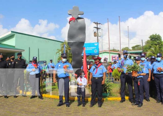 Pero hoy se recordó al General depositando una flor en la silueta ubicada en el Centro Tecnológico de Bluefields.