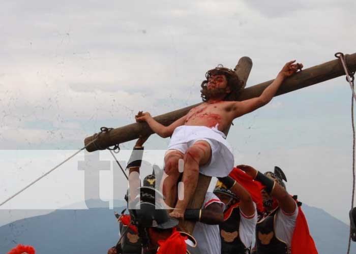 En el cerro El Ventarrón, Masaya, más de 50 jóvenes escenificaron la vida, muerte y Resurrección de Jesucristo; en este domingo de Ramos.