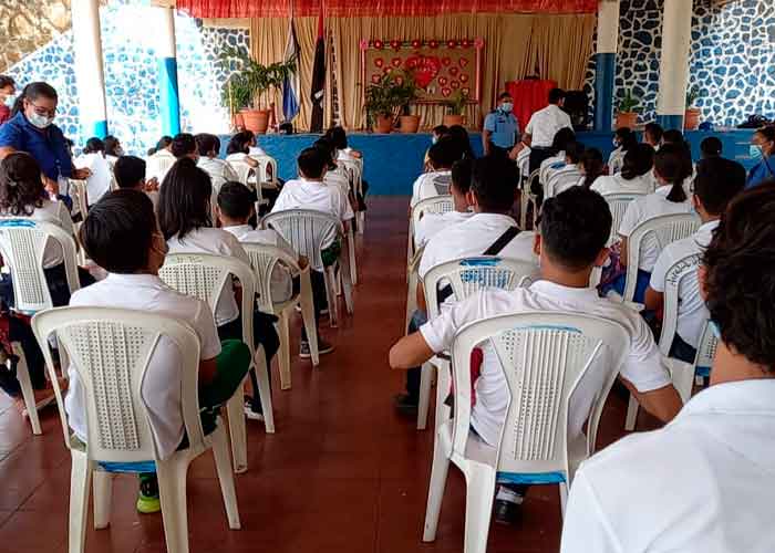 La tarde de este miércoles 23 de junio 2021, el Ministerio de Gobernación junto al Ministerio de Educación, Ministerio de la Familia y Policía Nacional entre otras instituciones, realizaron charla a estudiantes del colegio del Centro Escolar Pablo Hurtado, en la ciudad de Juigalpa, en Chontales sobre los factores de riesgos que influyen el consumo de drogas en los jóvenes.