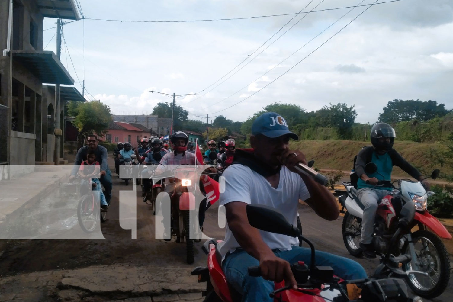 La caravana de vehículos y motocicletas salió de la casa del Partido Frente Sandinista a recorrer las diferentes calles del municipio; enarbolando la bandera roja y negra, símbolo de lucha por la libertad de nuestro pueblo, finalizando en el mismo lugar.