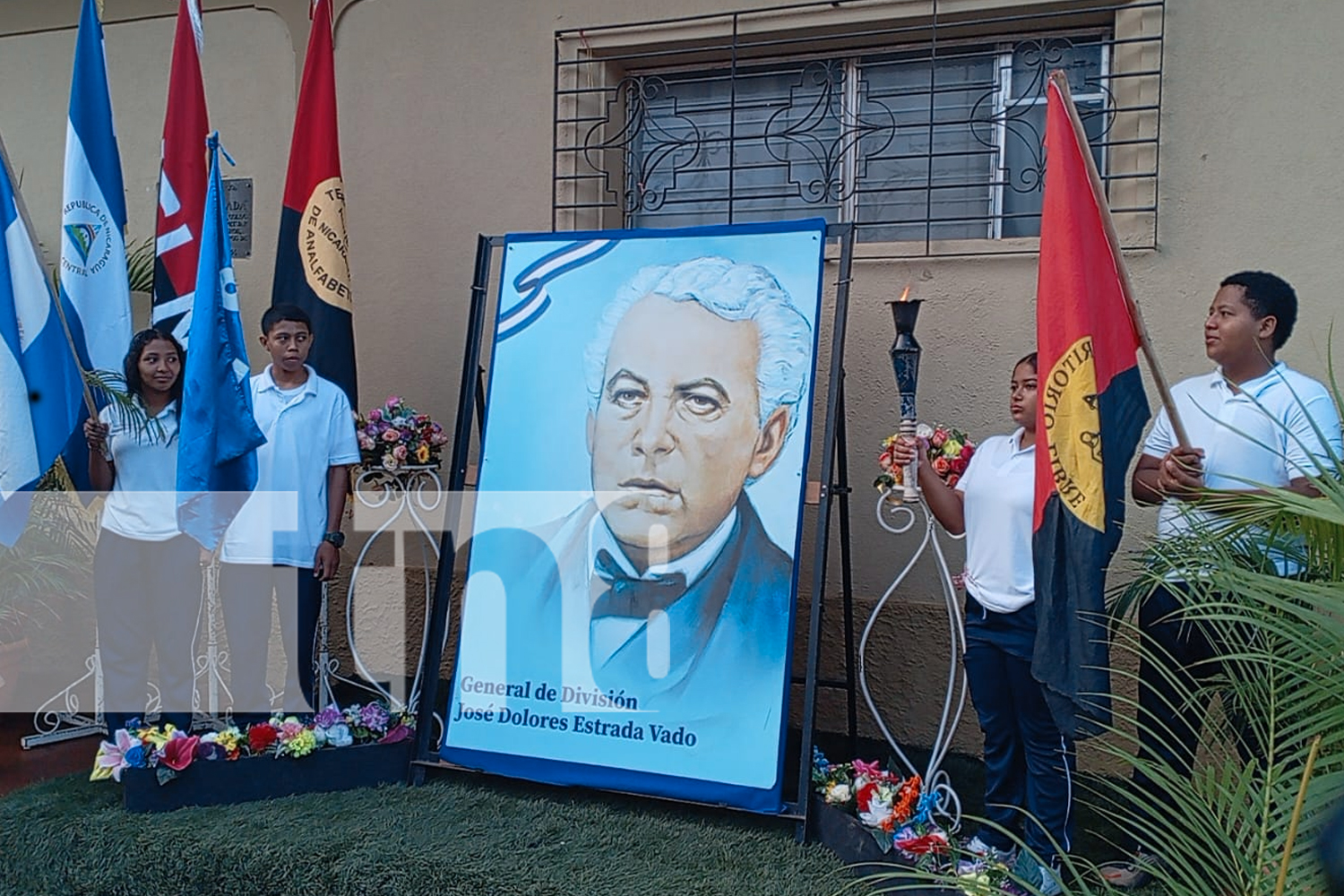 En el bulevar que lleva su mismo nombre, realizaron un acto cultural para después salir en un recorrido con la antorcha de la dignidad y patriotismo, la cual fue llevada por estudiantes de la Federación de Estudiantes de Secundarias y atletas del Instituto José Dolores Estrada hasta la casa donde nació el general.