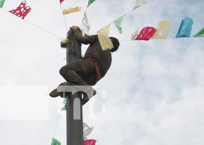 Subir a la cima para obtener el premio económico de 5 mil córdobas, significó un reto para los participantes, que después de varios intentos bajo un sol imponente lograron bajar el premio; en medio de los gritos y aplausos animosos de quienes acudieron a apoyarles en esta fiesta popular realizada en la Plaza Municipal de Feria.