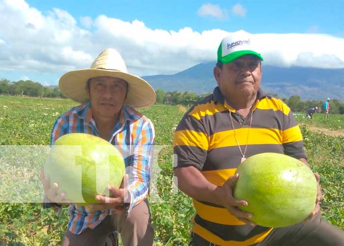 Roger Chevez, junto a sus hijos Jairo y Deivy cultivan alrededor de unas 55 manzanas de sandía en esta zona, todas estas sandías abastecen el Mercado Nacional, ya que por el momento no están abasteciendo costa rica; porque ahorita está en flota, este mercado lo abastecen de julio a septiembre, que ahí no hay y ellos si producen en otra zona de Nandaime.