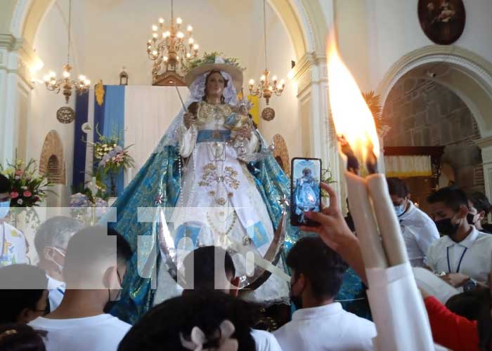En Diriomo, sosteniendo dos candelas de cebo entre sus manos, alzando la mirada hacia la venerada imagen de la Candelaria, María Elena Muñoz; agradece por los favores recibidos a través de la intercesión de la madre de Jesús, para ella y su familia: