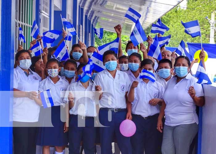 Con una sonrisa en sus rostros, los estudiantes de la escuela Cristóbal Rugama en Masaya han regresado a sus aulas de estudios.